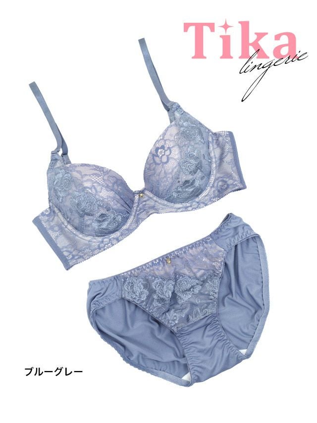 ゴージャスフラワーレースゴールドビジューチャーム付き脇高フルカップブラジャー&ショーツ2点セット1