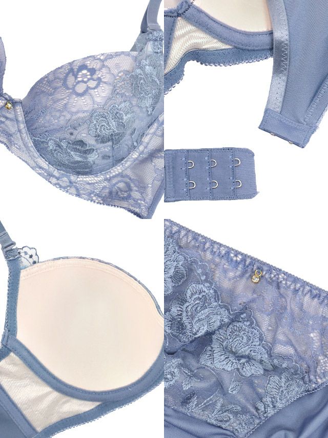 ゴージャスフラワーレースゴールドビジューチャーム付き脇高フルカップブラジャー&ショーツ2点セット商品詳細2