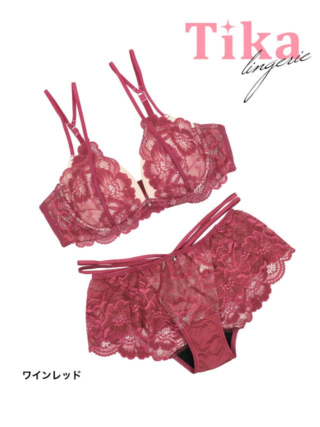 ヌーディーカラー×エレガントフラワーレースコードカップブラジャー&ダブルラインショーツ2点セット1