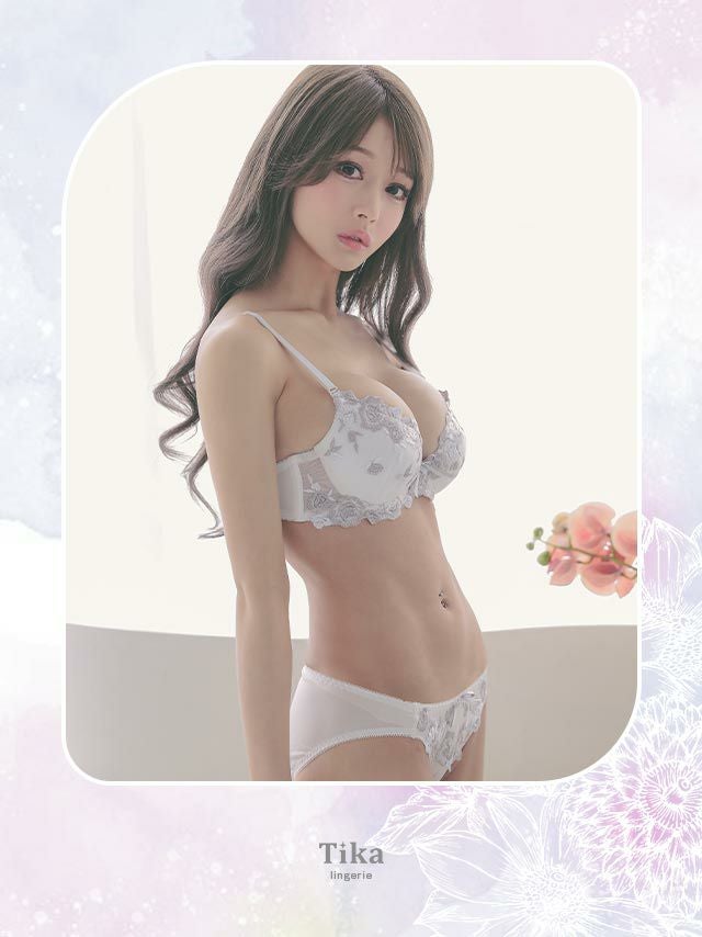 3. 勝負下着 セクシー ランジェリー シルバーローズ刺繍ブラジャー&ショーツ2点セット