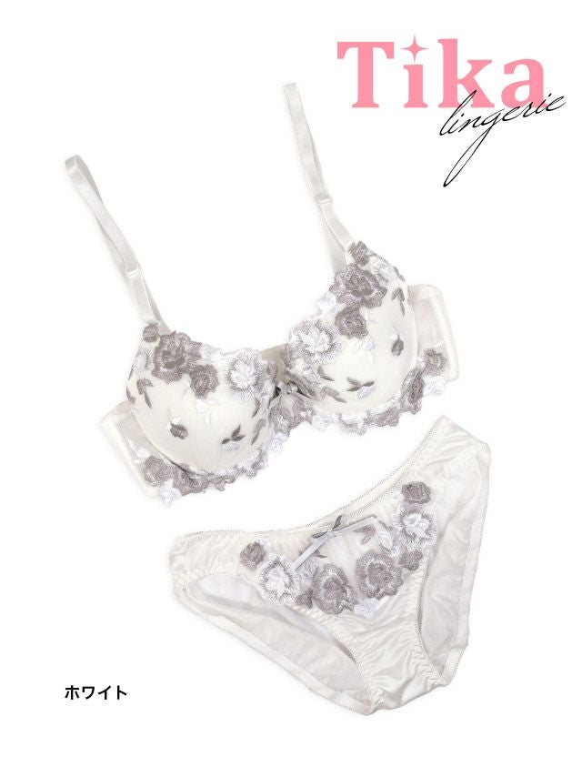 シルバーローズ刺繍ブラジャー&ショーツ2点セット