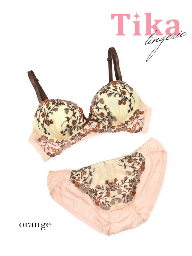 小花柄リボンノンワイヤーカップブラジャー&ショーツ2点セット