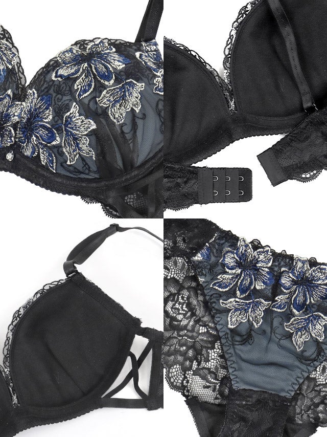 勝負下着 セクシー ランジェリー フラワー刺繍 サイドストラップ ワイヤー ブラジャー ショーツ 2点セット のディティール画像2枚目