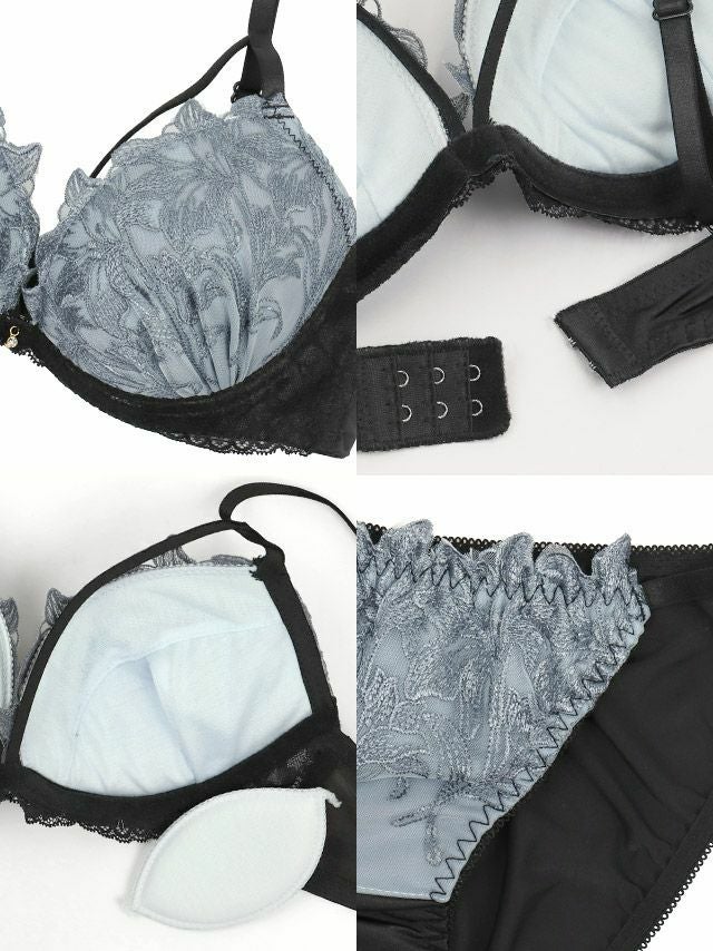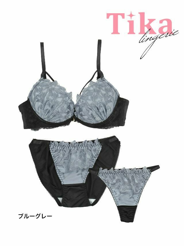 リリー刺繍レースコードワイヤーブラジャーショーツTバック3点セット商品詳細3