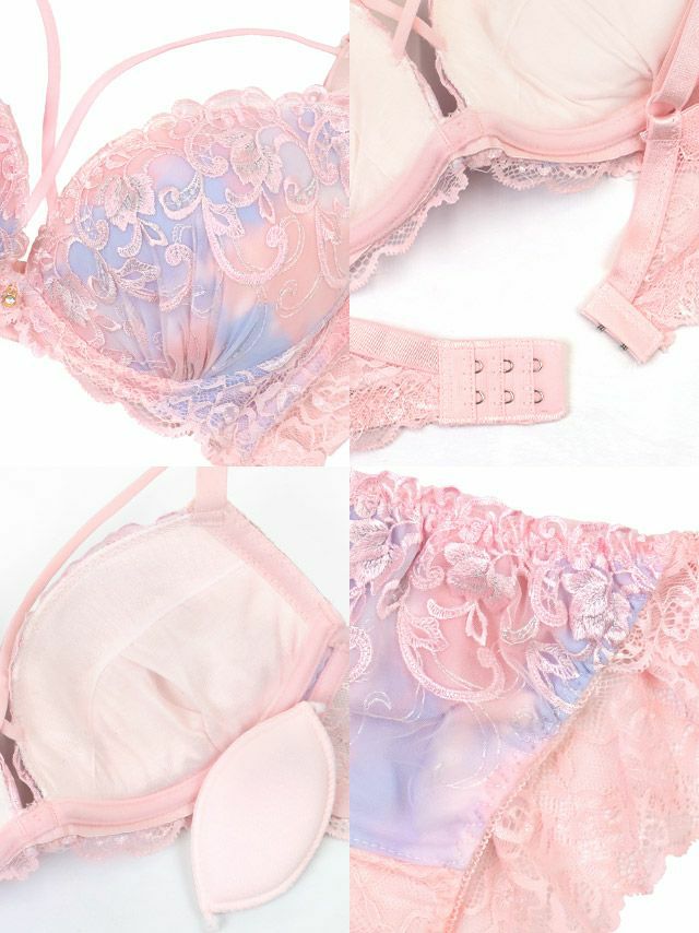 フェアリーな可愛さ溢れる♡ [新作] 勝負下着 マーブル 刺繍 レース バストクロス ワイヤー ブラジャー ショーツ 2点セット
