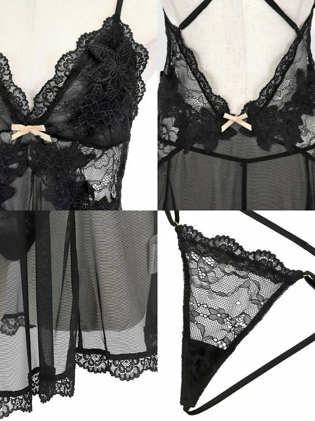 2点セットフラワーレースリボンシアーランジェリーTバックショーツベビードールの商品詳細1
