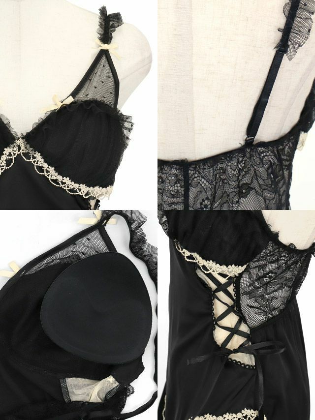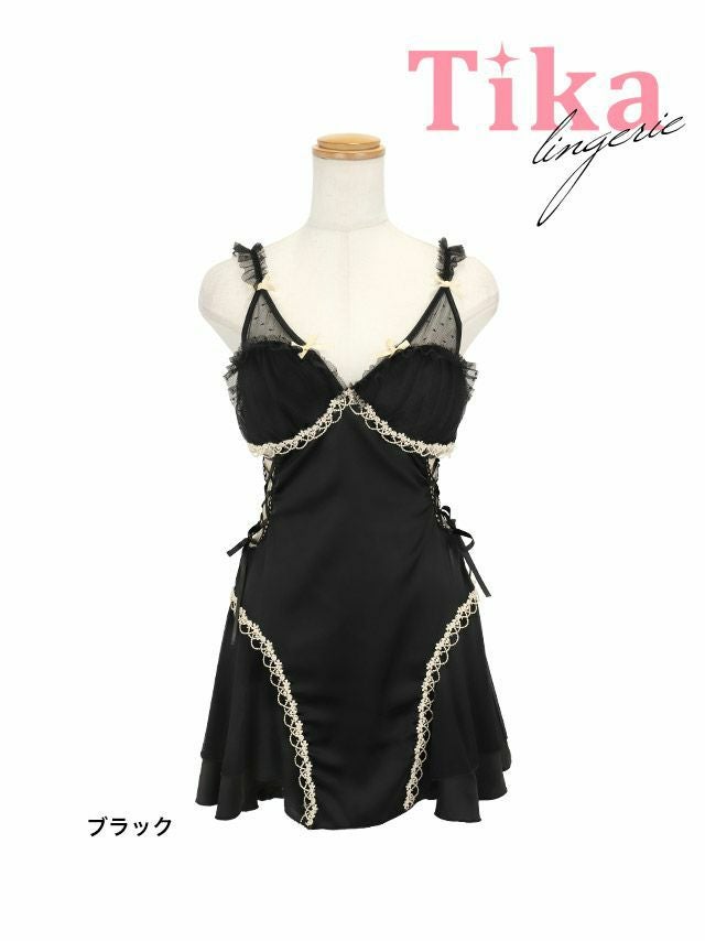 サイド編み上げドットシアーリボンレーステープベビードールの商品詳細1