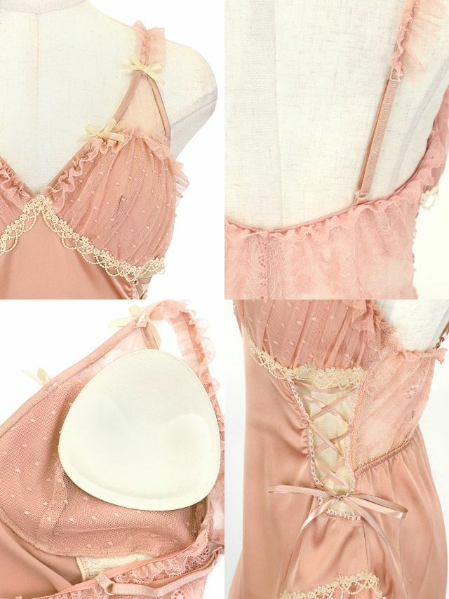 ドットチュールフリルサイド編み上げリボンベビードール5