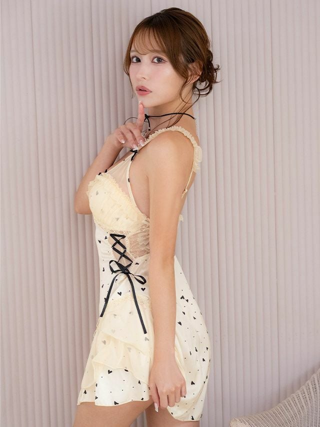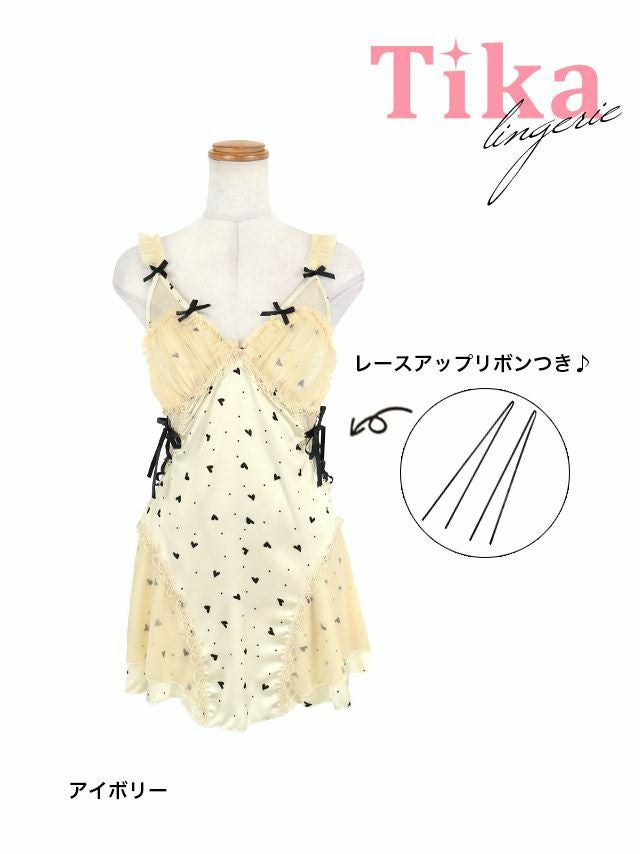 ハートモチーフドットサイドレースアップチュールフリルリボンベビードール