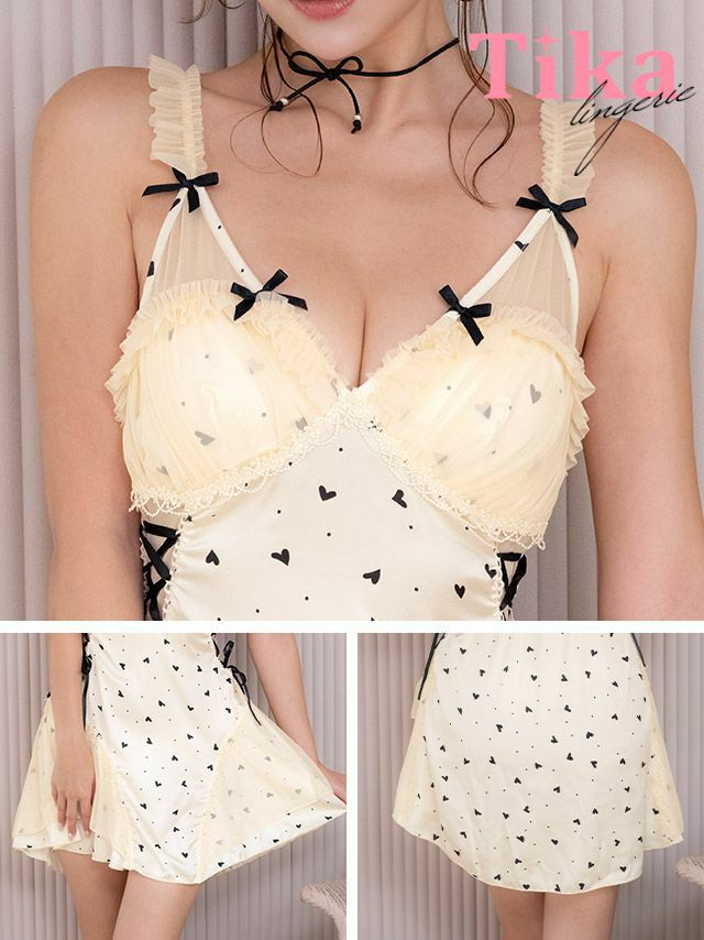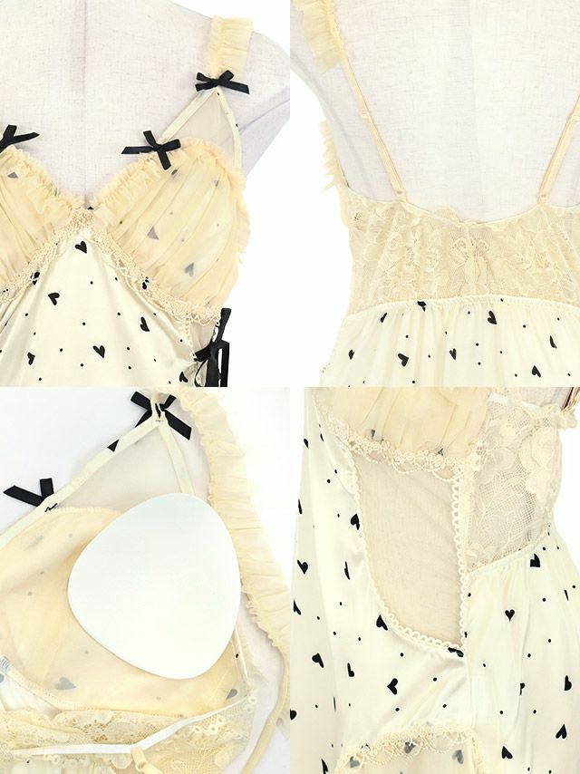 ハートモチーフドットサイドレースアップチュールフリルリボンベビードール1