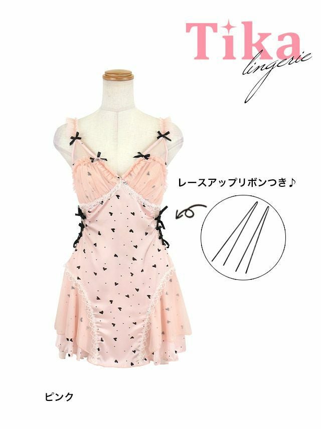 サイドレースアップハートリボンベビードール