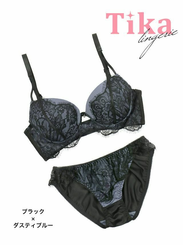 ランジェリー下着アイラッシュレースカットアウト脇高ワイヤーブルーブラジャーショーツ2点セット商品詳細1
