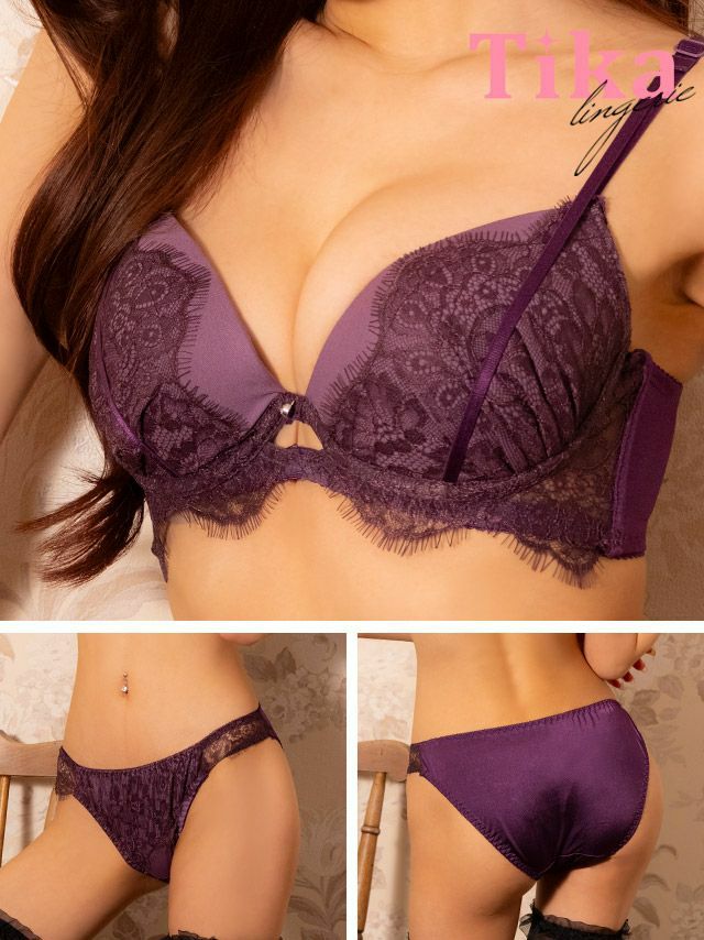 4. [新作] 勝負下着 セクシー ランジェリー アイラッシュレース レイヤード フロントカットアウト 脇高 ワイヤー ブラジャー ショーツ 2点セット