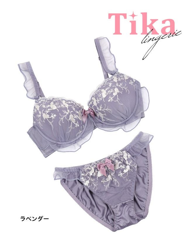 キャット 刺繍 フェミニン チュール フリル リボン ワイヤー ブラジャー ショーツ 2点セット商品詳細1
