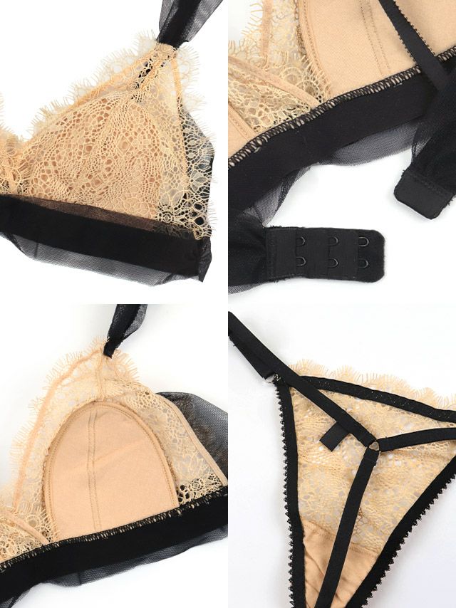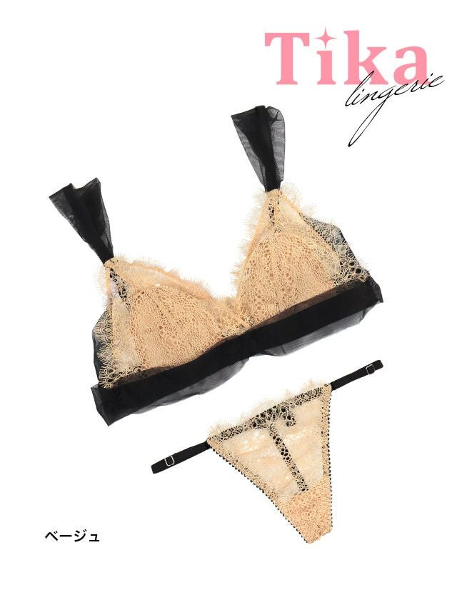 ケミカルレースチュールブラジャー&TバックショーツSEXYランジェリー2点セットのディティール