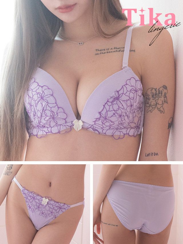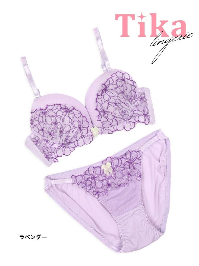 半透明フラワーレース 脇高カップブラジャー&ショーツ2点セット