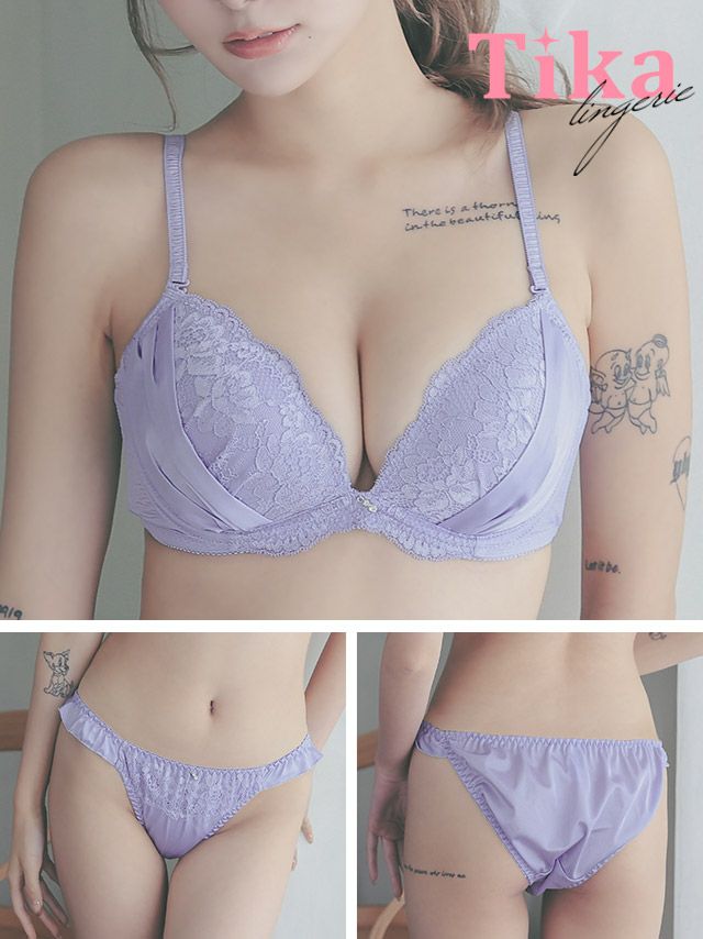 3. 勝負下着 セクシー ランジェリー フラワーレースサイドサテンブラ&フリルショーツ2点セット