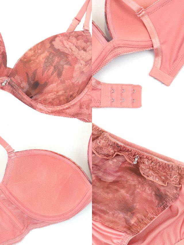 4. 勝負下着 ビジューチャームニュアンス花柄脇高フルカップブラジャー&ショーツ2点セット