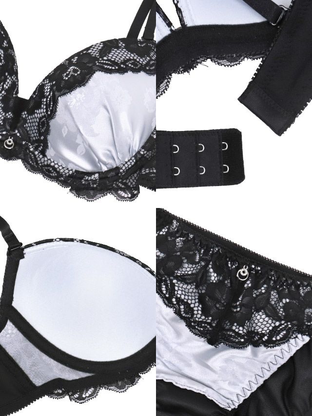 フラワーブラックレースブラジャー&ショーツ2点セット