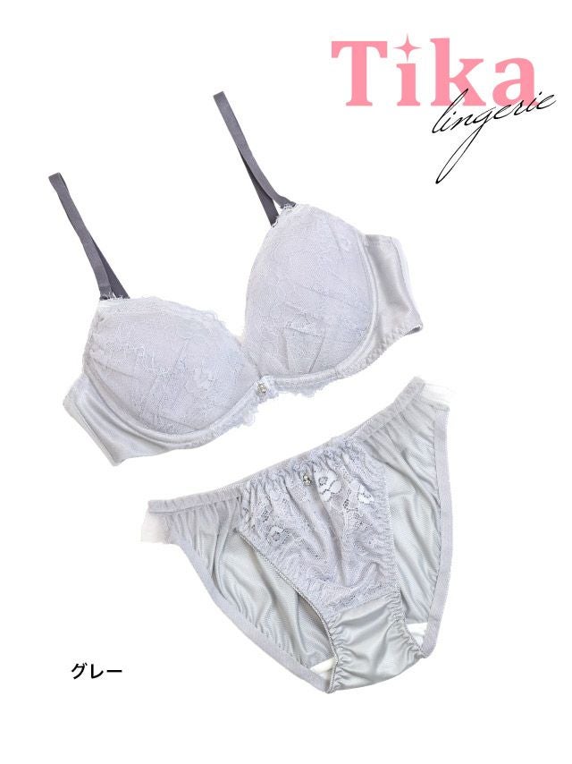シアーチュールレース脇高フルカップブラジャー&ショーツ2点セット