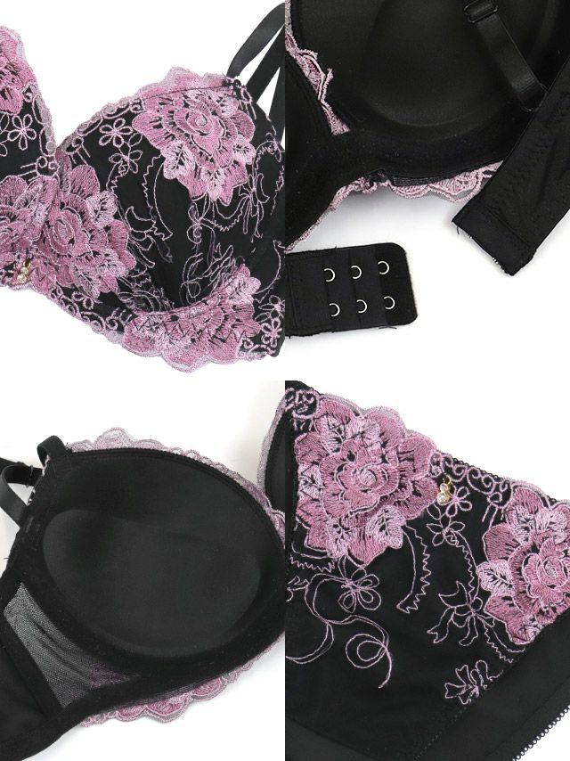 ブラック×パープルのフラワー刺繍が