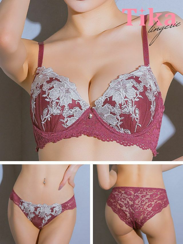 4. 勝負下着 セクシー ランジェリー ボタニカル フラワー 刺繍 レース ワイヤー ブラジャー ショーツ 2点セット