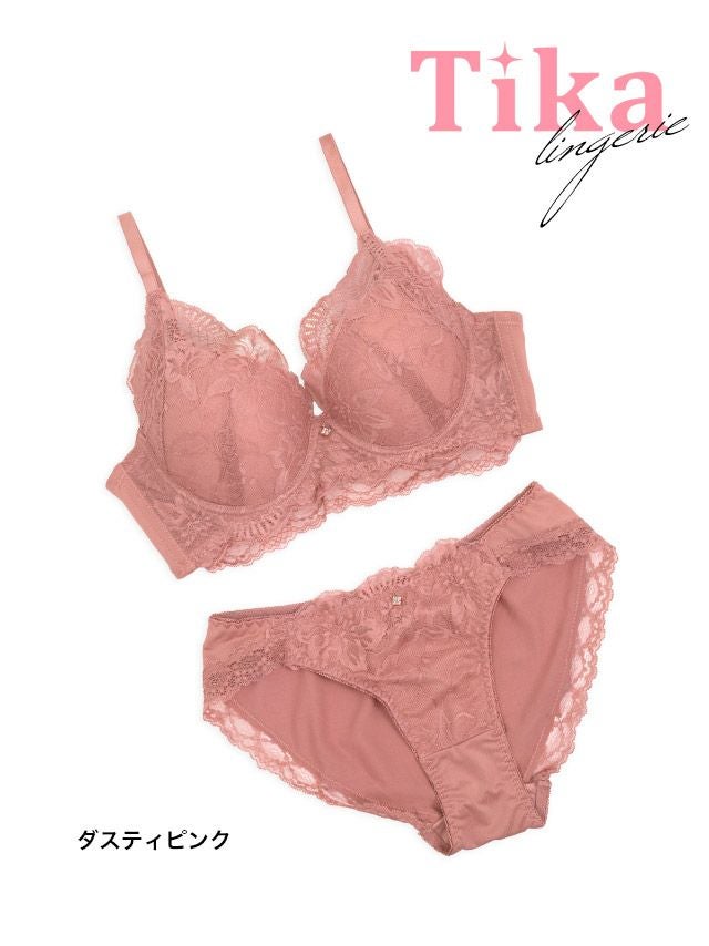 エレガントレースビジューチャーム付き脇高カップブラジャー&ショーツ2点セットカラーバリエーション