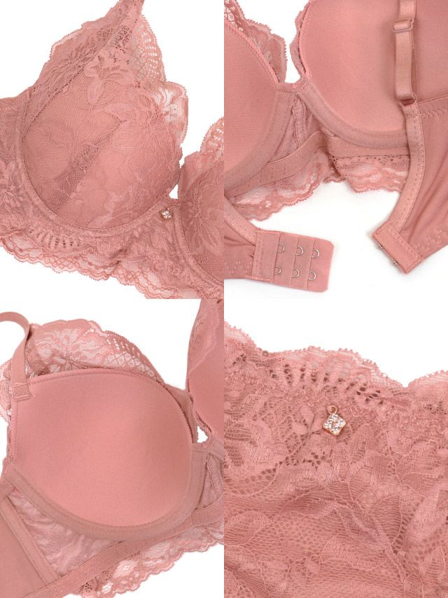 エレガントレースビジューチャーム付き脇高カップブラジャー&ショーツ2点セット2
