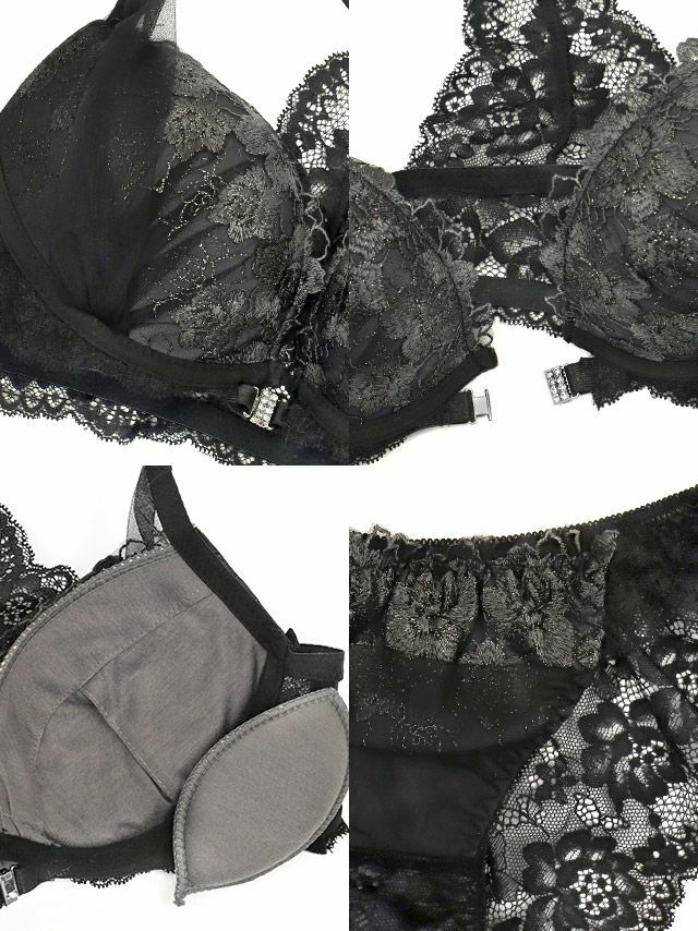エレガントレースチュールレイヤードフロントホックワイヤーブラジャーショーツ2点セット3