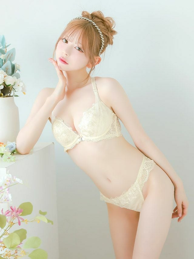 5. 勝負下着 セクシー ランジェリー クラシカルレース チュールベール フロントホック ワイヤー ブラジャー ショーツ 2点セット