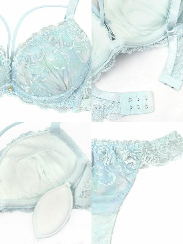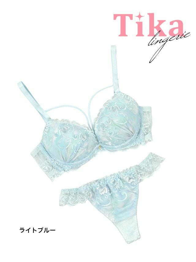 5. 勝負下着 セクシー ランジェリー パステル バストクロス 脇高 ワイヤー ブラジャー Tバックショーツ 2点セット