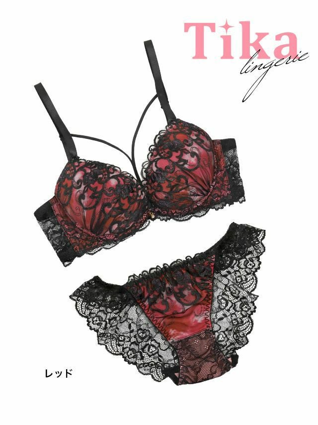 勝負下着 セクシー ランジェリー 下着 グラデーション 刺繍 ブラックレース クロスコード 脇高 ワイヤー ブラジャー ショーツ 2点セット のカラーバリエーション画像