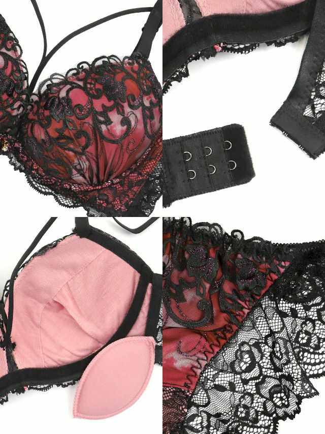 勝負下着 セクシー ランジェリー 下着 グラデーション 刺繍 ブラックレース クロスコード 脇高 ワイヤー ブラジャー ショーツ 2点セット の商品画像4枚目