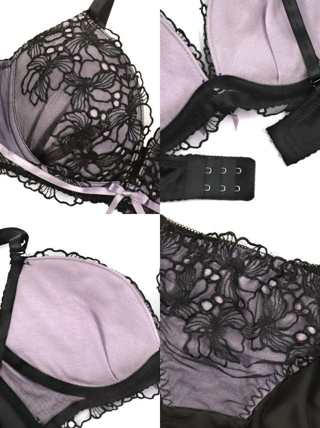 フラワーチュールサテンリボンカップブラジャー&ショーツ2点セットのディティール2枚目