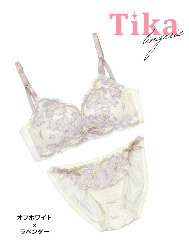 ボタニカル刺繍ノンワイヤー脇高ブラジャーショーツランジェリー2点セット商品詳細2