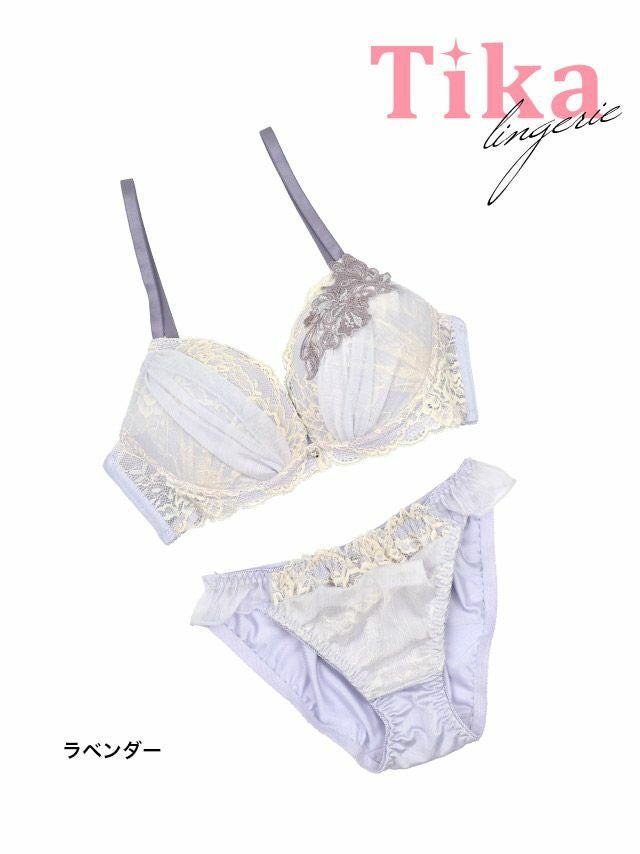 レイヤードシアーレースボタニカルワイヤーカップブラジャーショーツ2点セット1