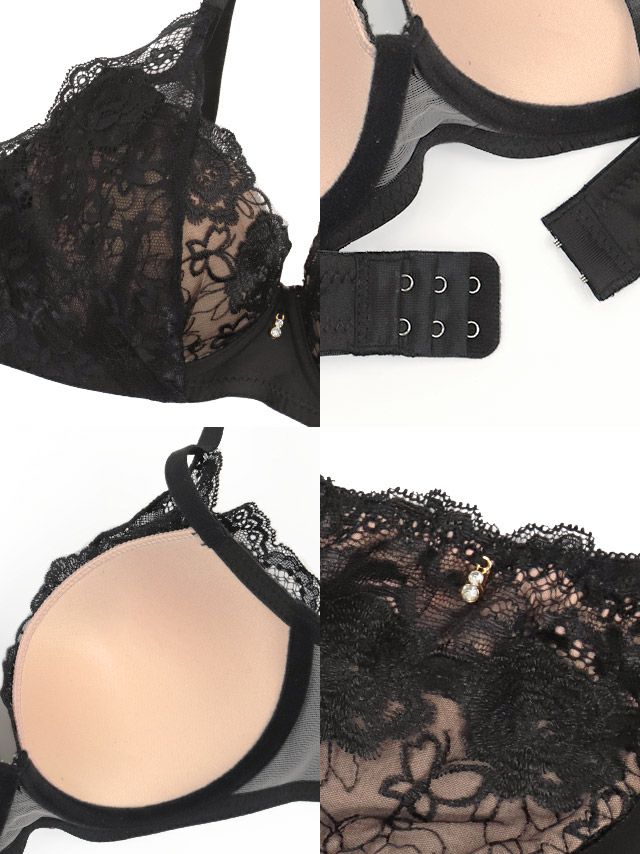 勝負下着 ヌーディーカラー×シアーフラワーレースブラジャー&ショーツ2点セット商品詳細2