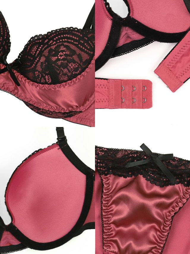 ブラックエレガントレースサテンリボンカップブラジャー&ショーツ2点セット商品詳細1