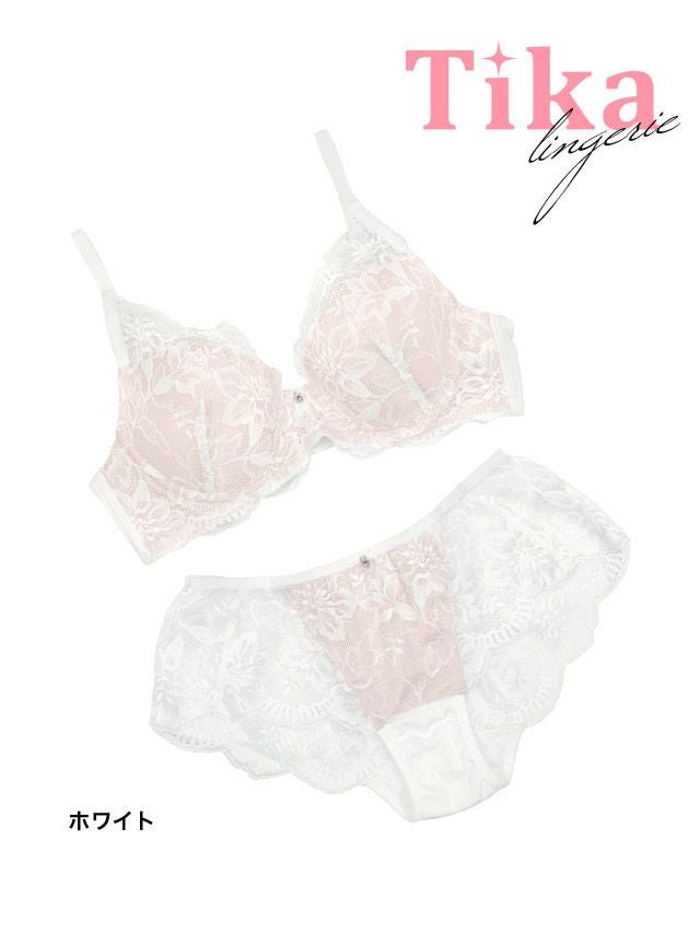 ヌーディーオールスカラップホワイトレースカップブラジャー&ショーツ2点セットカラバリ