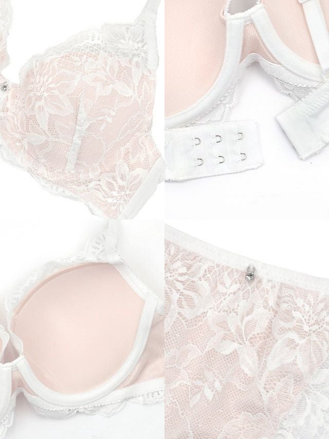 ヌーディーオールスカラップホワイトレースカップブラジャー&ショーツ2点セットフロントバック