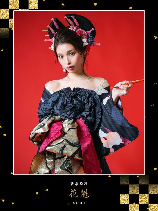 花魁 浴衣・兵児帯・飾り兵児帯・下駄・肌襦袢 5点セット☆