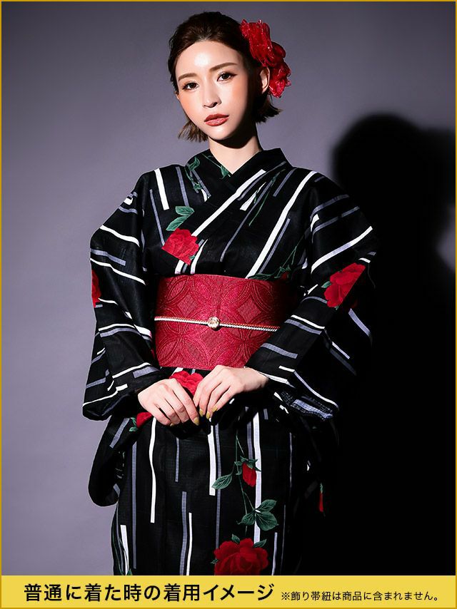 大人かっこよく引き締めてくれる濃い赤色の帯で、