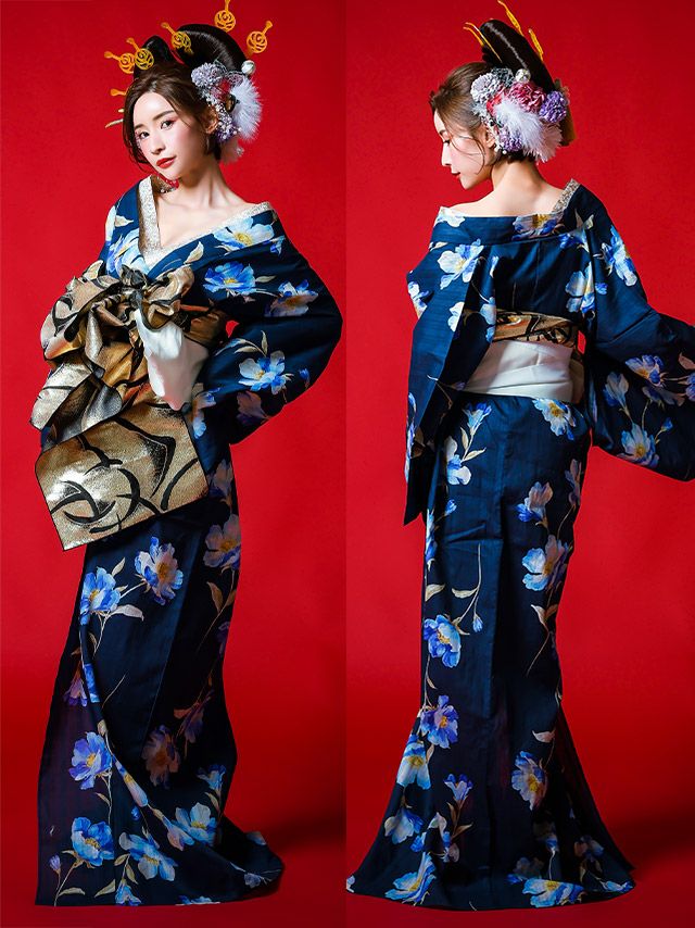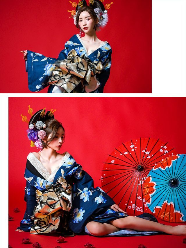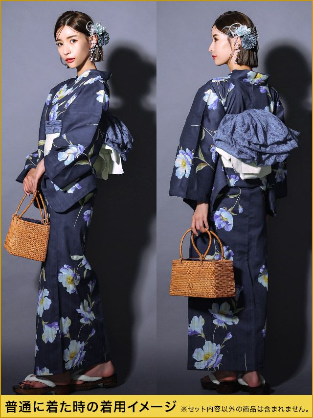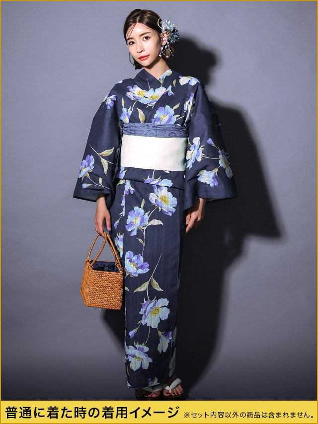 花魁 浴衣・平帯・飾り兵児帯・下駄・肌襦袢 5点セット☆