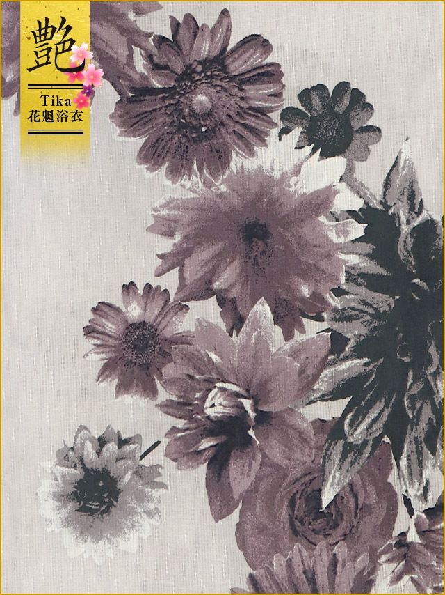 花魁 浴衣・兵児帯・飾り兵児帯・下駄・肌襦袢 5点セット☆ シックなグレー地にヴィンテージ花が映える大人浴衣♡