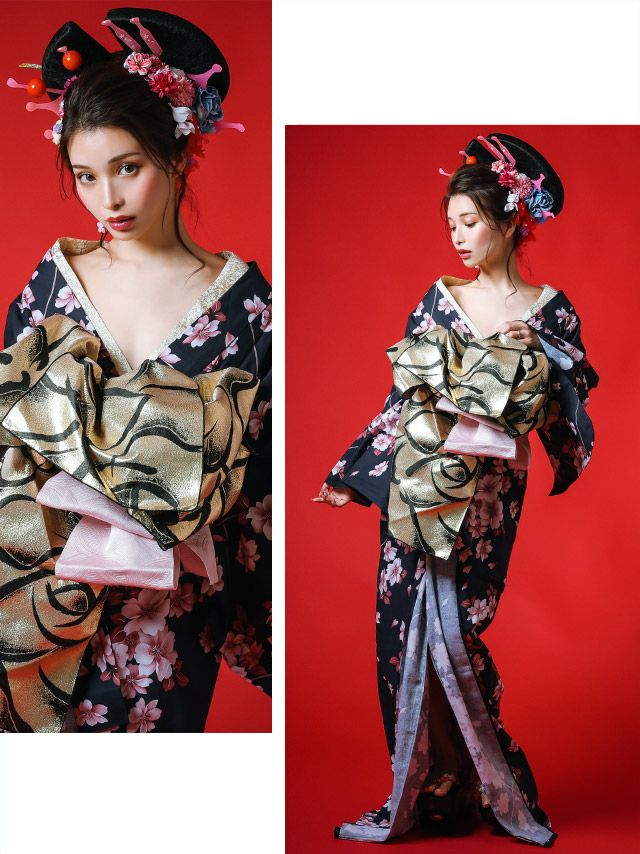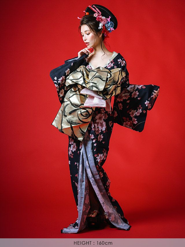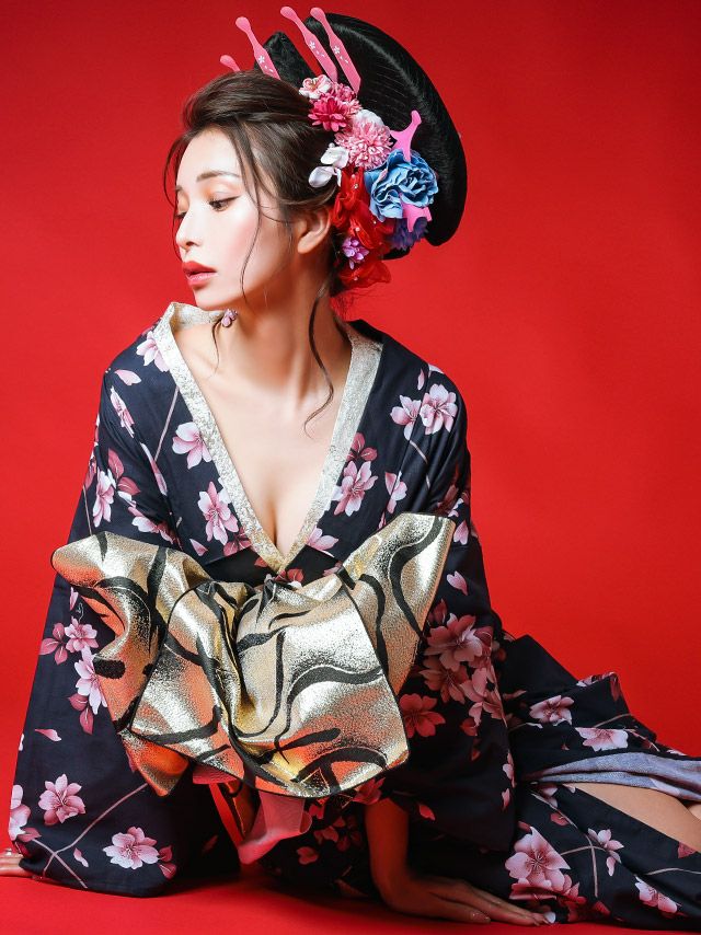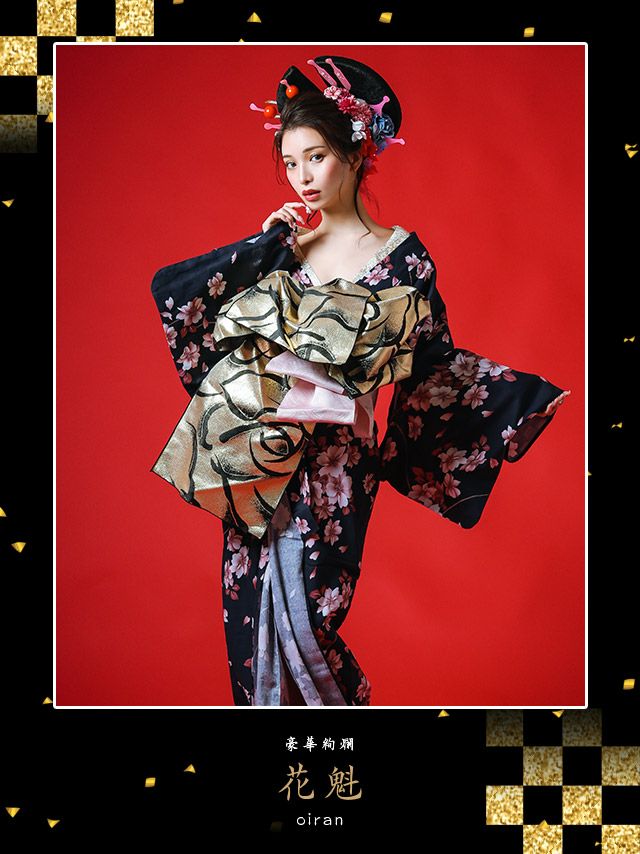 花魁 浴衣・兵児帯・飾り兵児帯・下駄・肌襦袢 5点セット☆