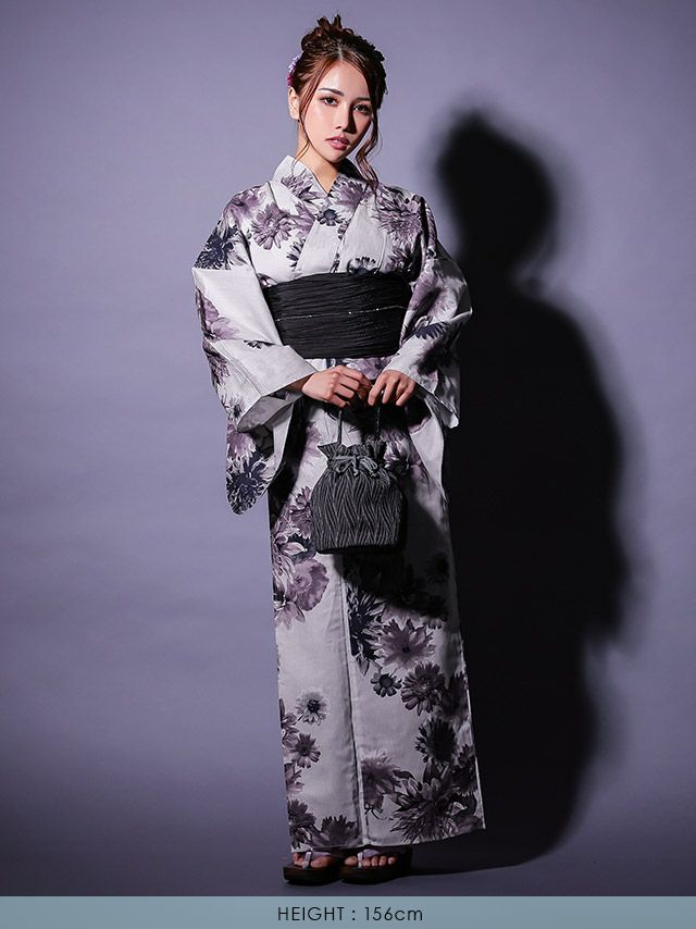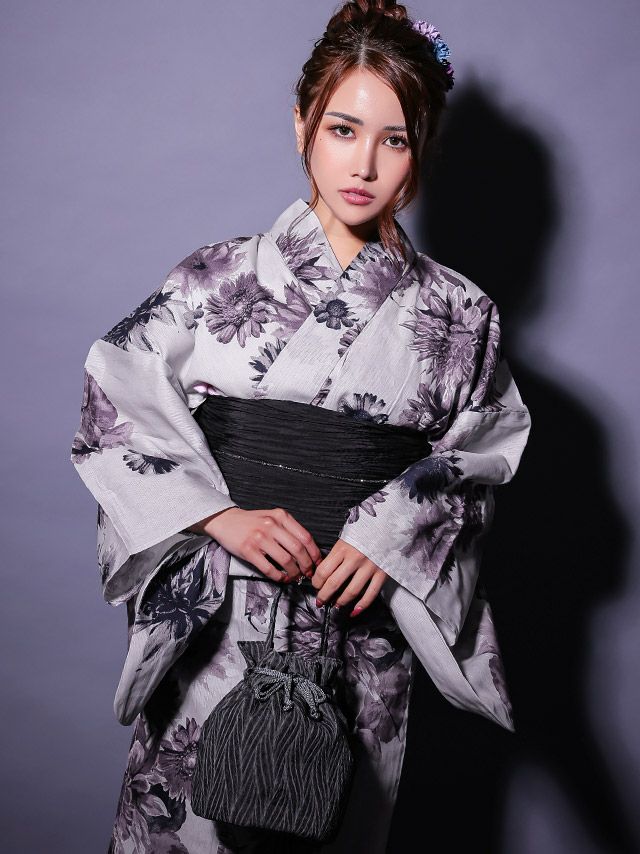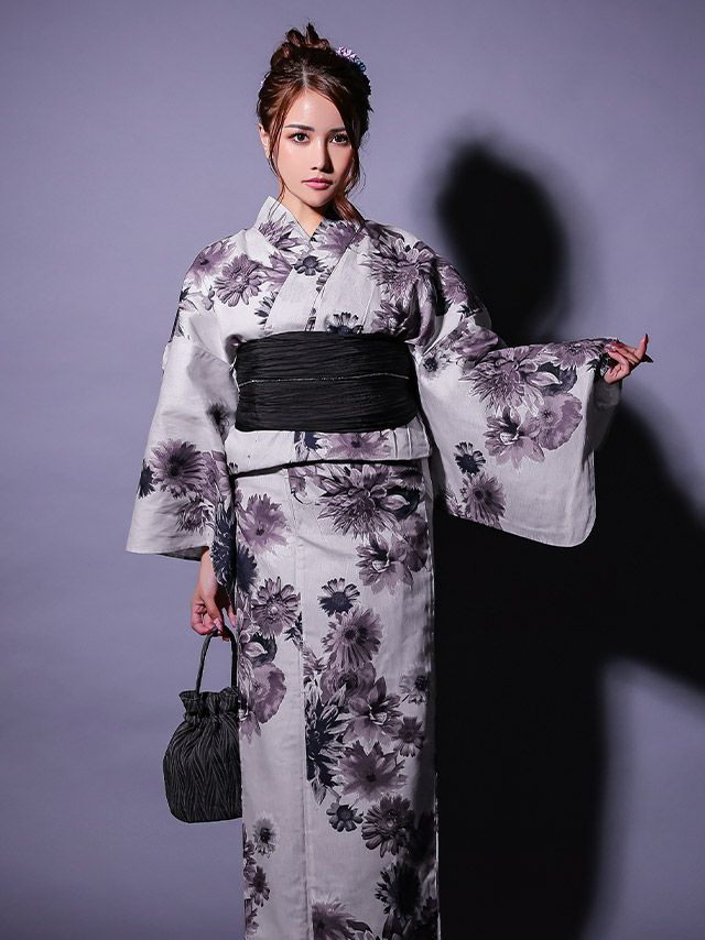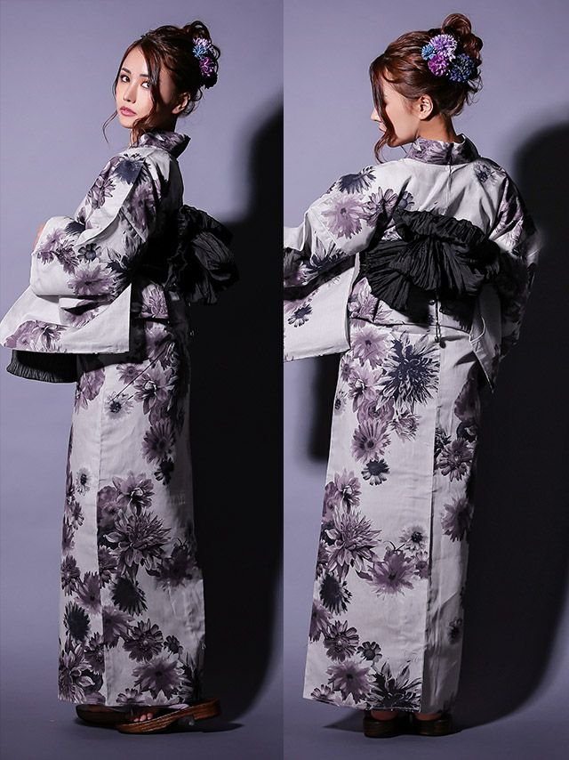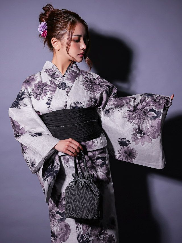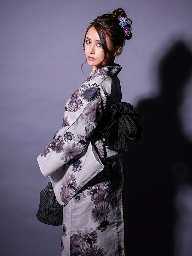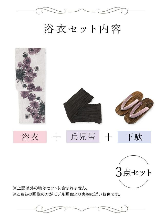 グレー地にヴィンテージ感漂う花柄が印象的な、粋シリーズの浴衣3点セット☆