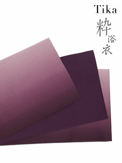 帯と下駄は紫のグラデーションで統一し、上品で重たくなりすぎない印象に。