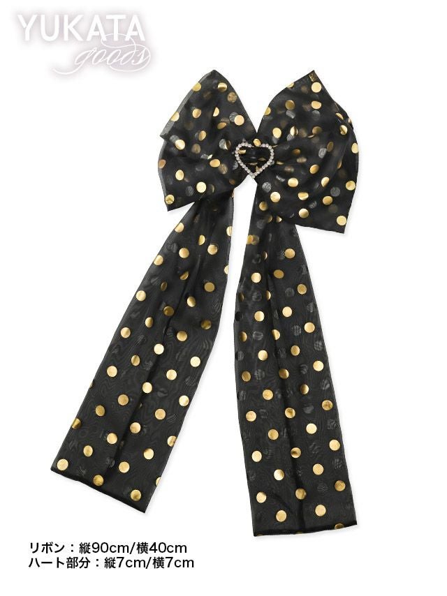 浴衣兵児帯黒地リボン型ゴールドドット模様飾り作り兵児帯単品