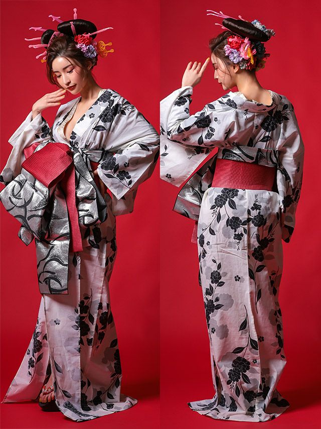 花魁 浴衣・兵児帯・飾り兵児帯・下駄・肌襦袢 5点セット☆