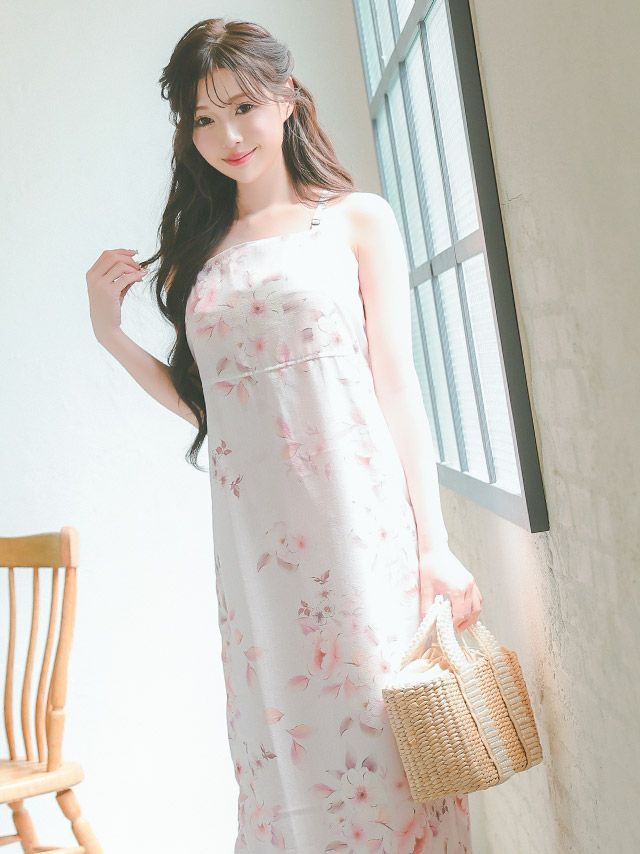 淡いピンク地に描かれたフラワー柄が乙女心をくすぐる1着♪
